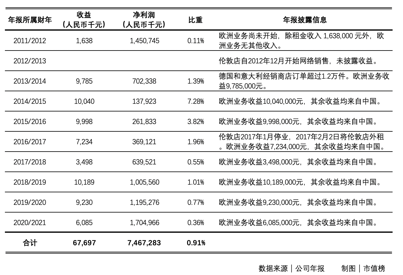 另外,根据波司登年报梳理,其欧洲业务收益(包含租金收入)占整体业务净利润不到1%,如果上述推测不准确,实际72国为欧洲业务收益部分,那么,从年报披露的数据来看,对畅销的定义可能值得商榷。