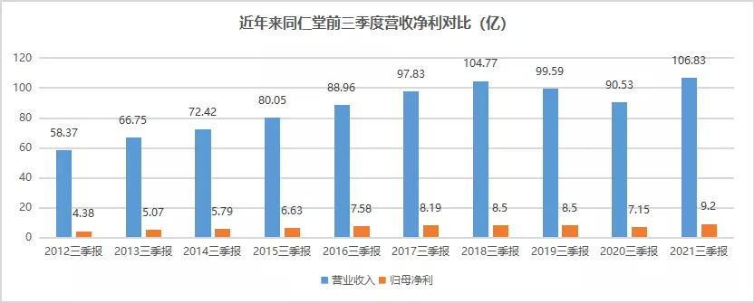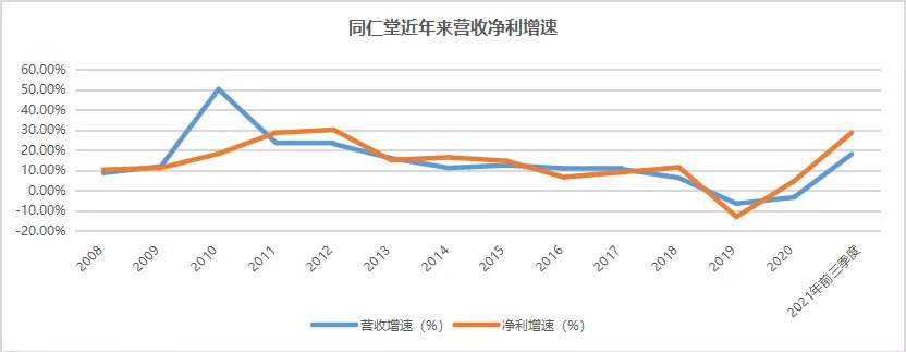 2021年是同仁堂的复苏之年。营收净利恢复到双位数接近20%的中速增长,这对于老字号药企实为不易。