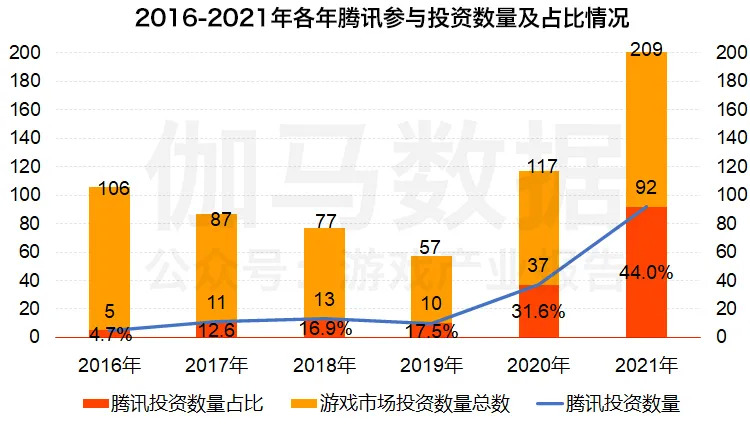 国内游戏市场投资活跃企业情况:腾讯遥遥领先,近两年活跃度增加