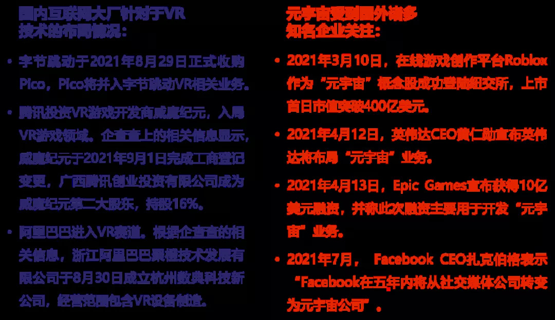 元宇宙概念兴起, VR等核心技术赛道将成为游戏企业重点发力的方向。