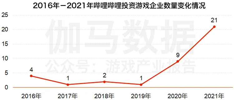 作为弹幕视频网站以及二次元内容社区的哔哩哔哩,游戏产品带来的收入一直是其主要的收入来源之一,哔哩哔哩游戏收入占总营收比例一度超过六成。进入2020年后,哔哩哔哩游戏方面的收入占总营收的比例有着明显下滑。或是游戏收入占比下滑以及2021年游戏收入同比明显下降带来的影响,哔哩哔哩在进入2020年后,在游戏市场的投资动作明显加快。2021年投资游戏企业数量已超前五年全年总和。哔哩哔哩吸引了大量二次元用户,在投资策略上哔哩哔哩也更倾向于进一步跟进二次元及泛二次元用户的兴趣需求。