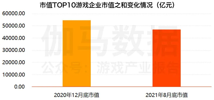 同时,二级市场对游戏的投资也更为谨慎,据伽马数据(CNG)统计,从2020年12月至2021年8月,国内市值TOP10的游戏企业市值之和出现变化,下降超过7000亿元。