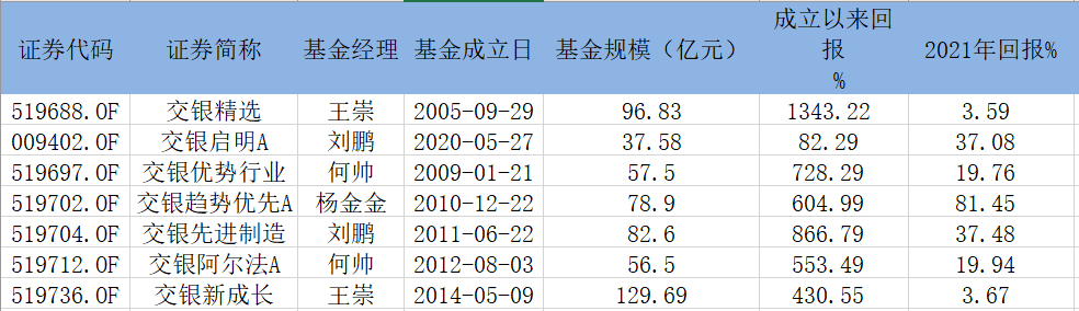 从基金规模来看,截至三季度末,交银精选规模为96.83亿元,2021年回报率为3.59%。由于2021年业绩欠佳,交银精选在去年二季度和三季度均出现了1.76亿份、20.16亿份的净赎回。
