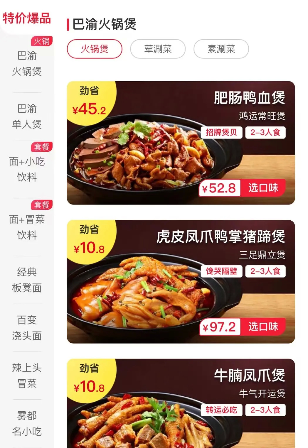 趣巴渝部分菜品,图/趣巴渝微信小程序