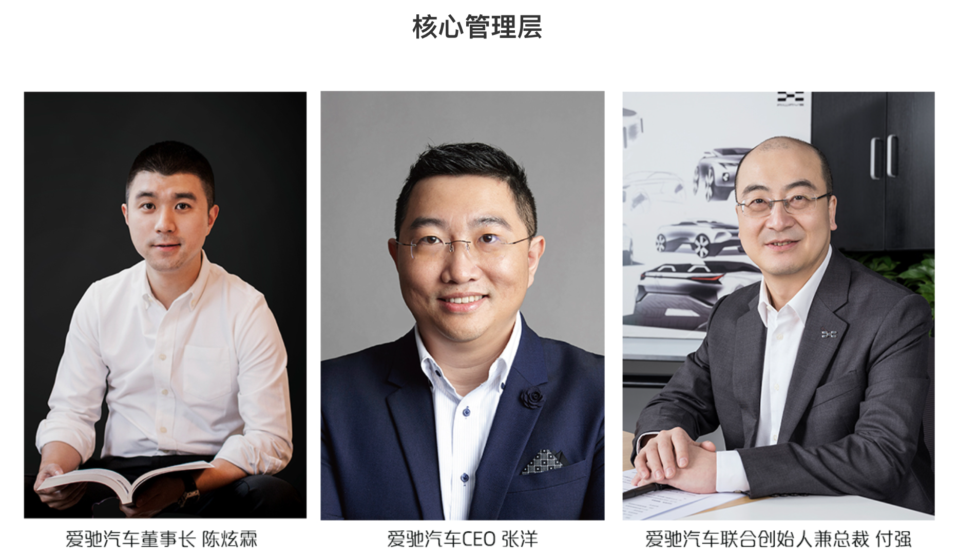 1月3日,据爱驰汽车官网显示,该公司管理层出现变更。全新管理层显示为:创始人付强继续担任公司总裁,但卸任董事长一职;爱驰汽车董事长一职现由陈炫霖担任;张洋担任公司CEO。