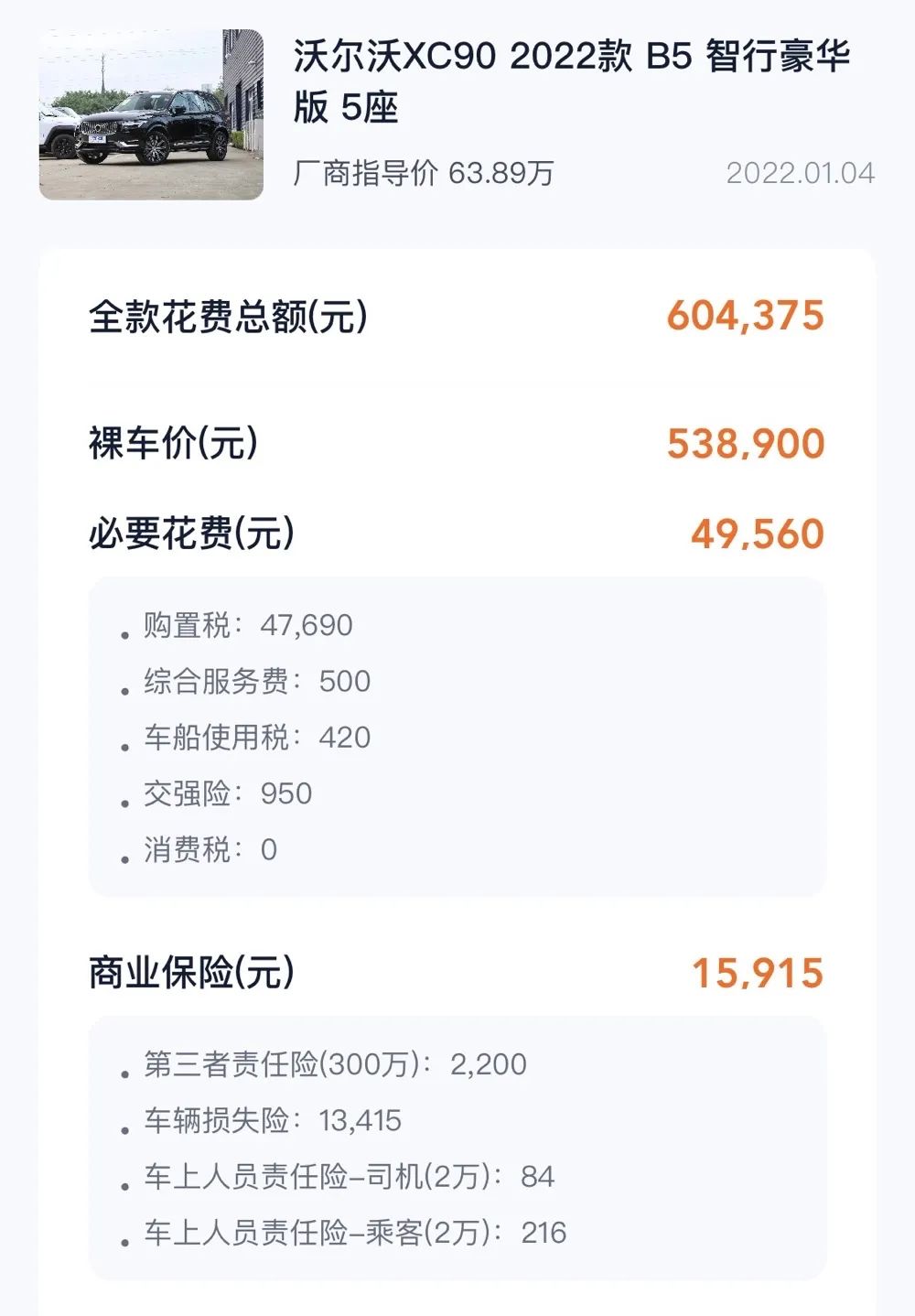 ▲沃尔沃XC90商业险报价