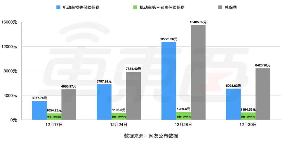▲2021年12月17日Model Y长续航版的保险价格
