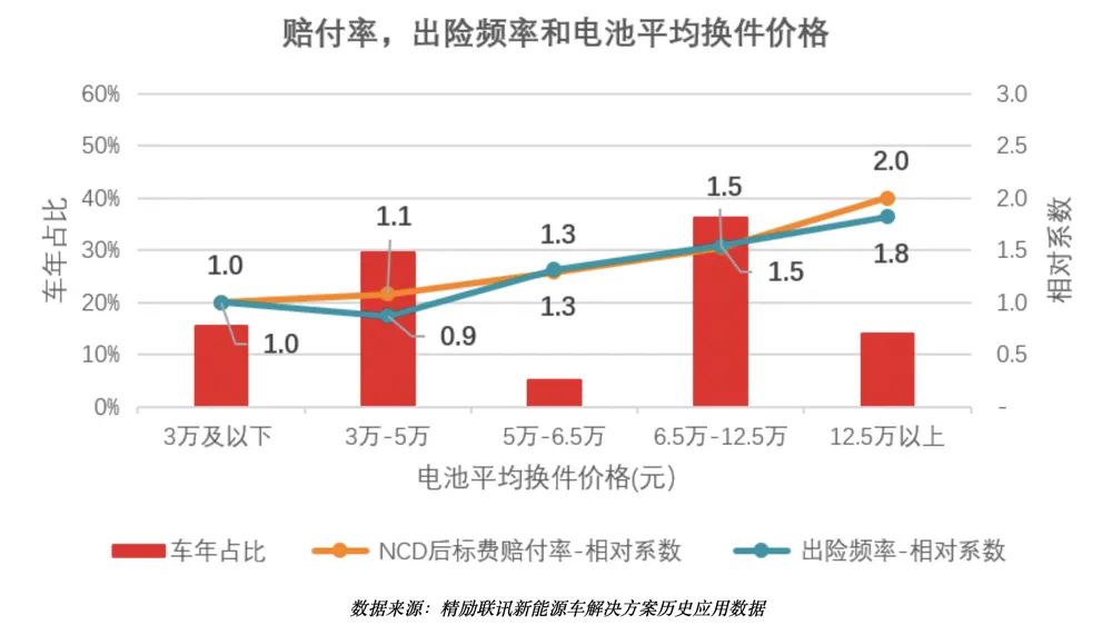 ▲赔付率、出险频率和电池平均换件价格图(数据来源:精励联讯)