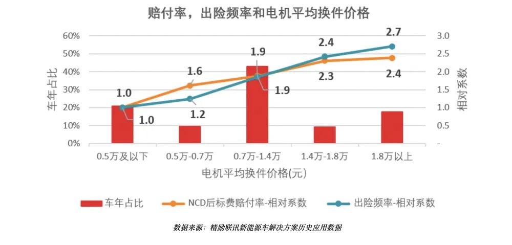 ▲赔付率、出现频率和电机平均换件价格图(数据来源:精励联讯)