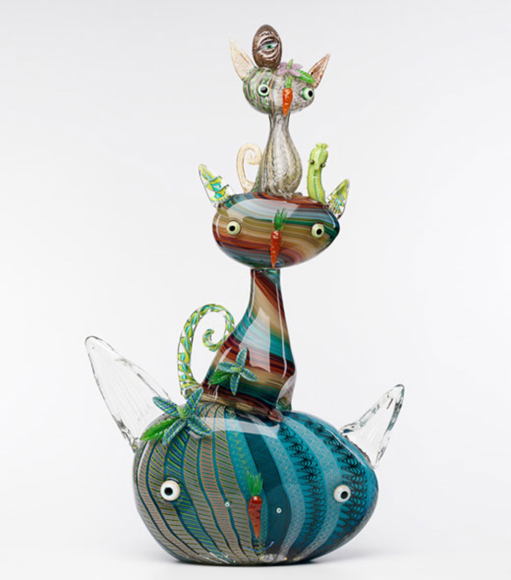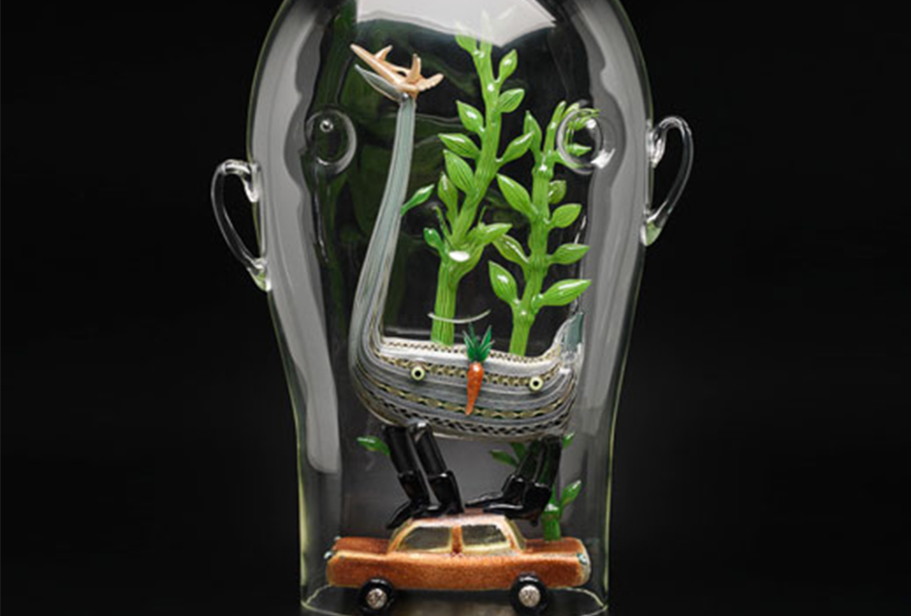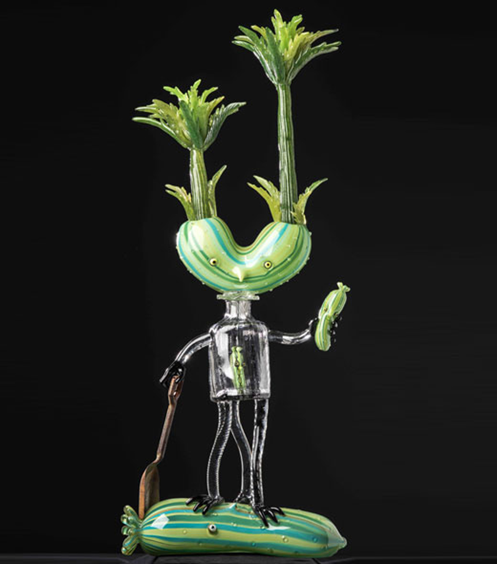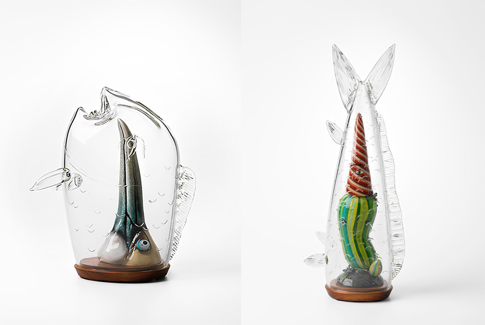 澳大利亚的Tom Moore从古代玻璃吹制技术中汲取灵感,用玻璃制品打造一个个超现实的梦幻故事。主角往往是动物、植物和机器结合的混合型生物,外层的透明玻璃穹顶匠心独运地各有造型。