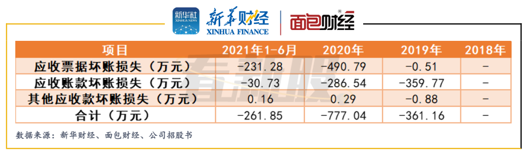 由于各报告期末应收票据及应收账款的增加,公司对其计提的坏账金额也有所增多,信用减值损失出现较快增长。2019、2020 年及2021 年1-6 月,公司信用减值损失金额分别为361.16万元、777.04 万元和261.85 万。