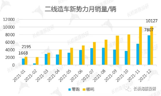 二线造车新势力的崛起也是2021年车市的重要特征,以零跑、哪吒为例: