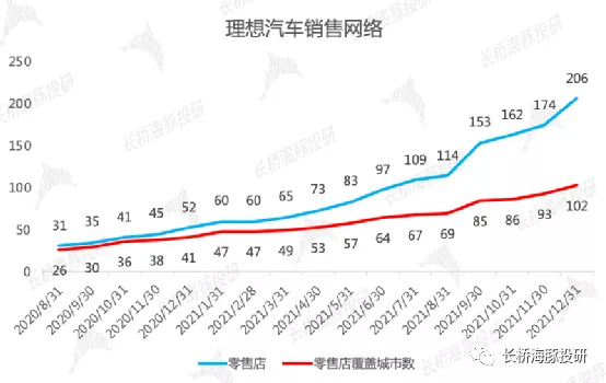 渠道方面:虽然最终的量不及小鹏,但公司3-4季度的门店扩张速度明显加快,截止2021年底,公司在102个城市拥有206家门店。