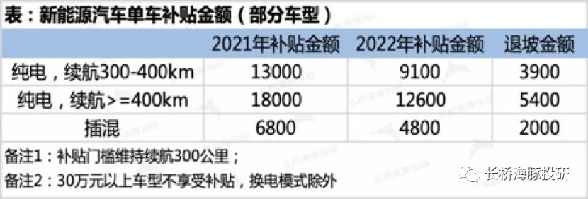 二、2022年新能源汽车补贴新政:小超预期,利空兑现