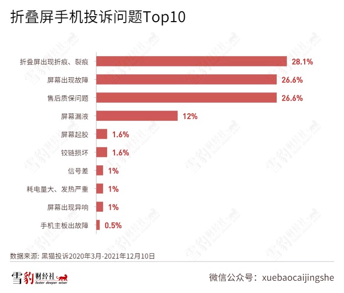 新浪数码2021年12月10日发布的微博显示,折叠屏手机近七成投诉与折叠屏有关。