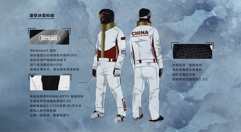 据FILA方面介绍,这款比赛战袍搭载了FILA最新的“凌空冰雪科技”,外部采用Dermizax®面料,耐水量超行业常规防水面料66%;在实验室严格模拟环境下透气透湿值达到4000,高于常规滑雪面料60%。