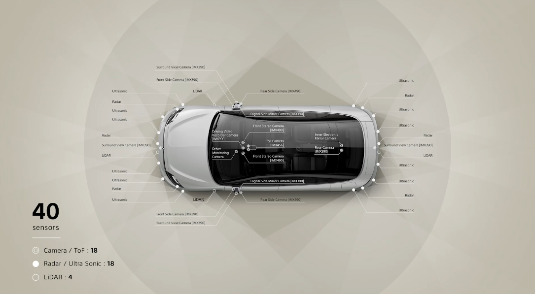 其车身四周安装了40个传感器,包括CMOS图像传感器和激光雷达传感器。VISION-S系统希望能够结合车载音响系统和人机界面系统实现直观的驾驶交互,使驾驶员可以从车内准确判断周围环境情况,例如四周是否有应急车辆。目前该车型也正在欧洲进行功能验证测试。