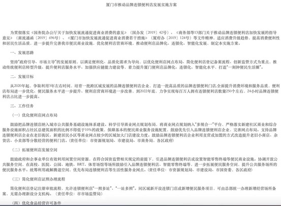 近年来,厦门政府不断制定出台政策扶持连锁便利店品牌建设,规定综合服务设施面积不低于社区建筑总面积的10%,为便利店发展提供了空间保障。此外,还简化了办证程序等等。