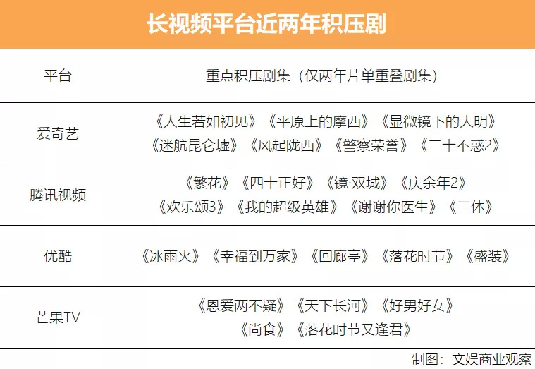整体项目存量上升,剧集头部内容多留存