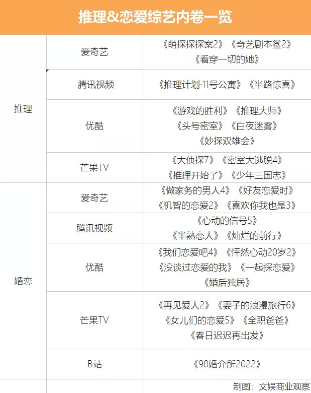 无独有偶,芒果TV有意加强的两大优势类型——推理与婚恋也已陷入内卷。