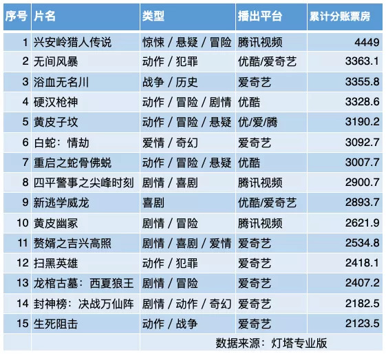 至于《无间风暴》《浴血无名川》《四平警事》系列等虽属于不同题材,但对网络电影市场有共同影响:超出惯性思维进军多元细分题材市场,拓宽了网络电影的受众范围。
