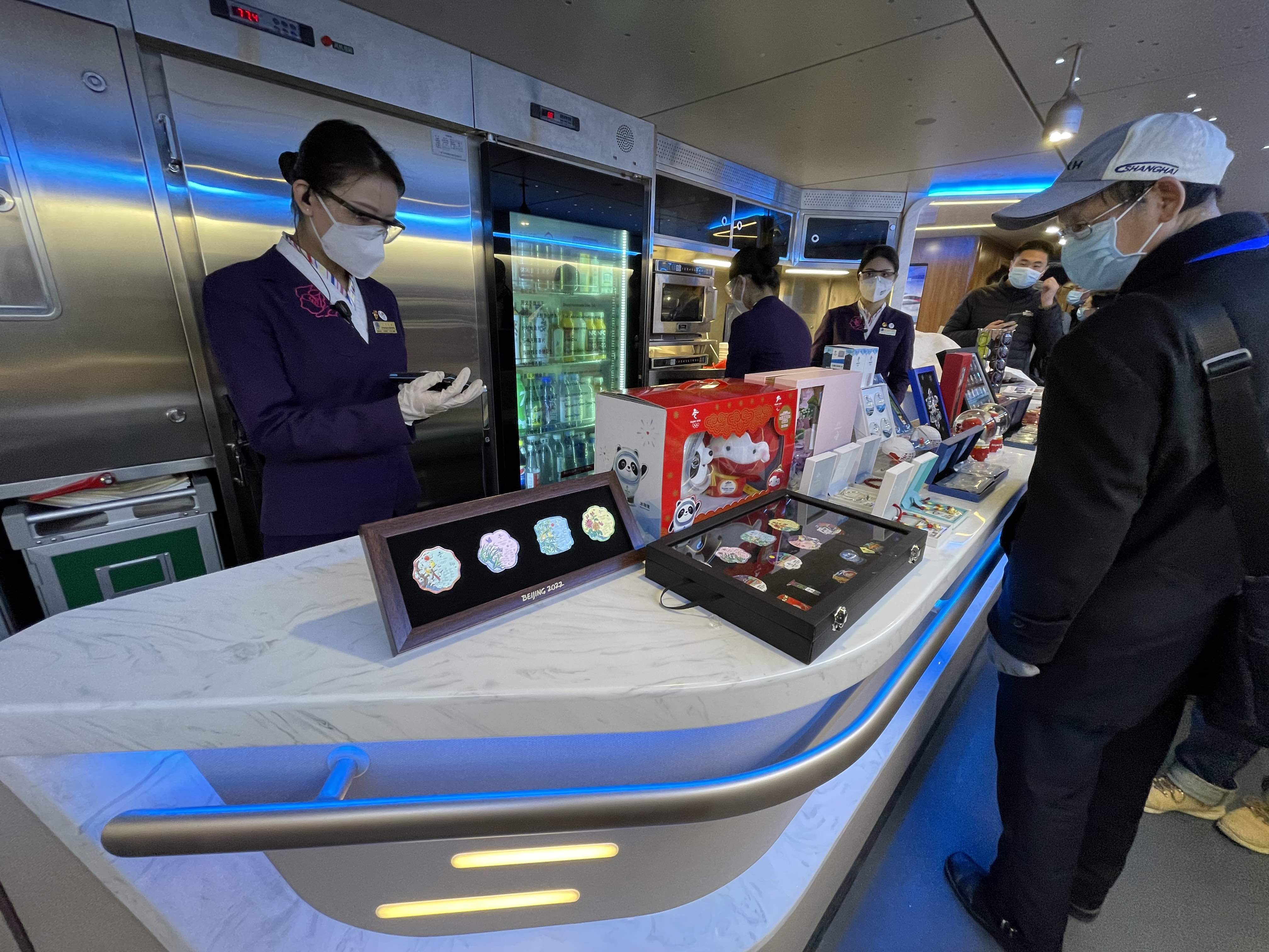 在冬奥列车上,闭环人员和非闭环人员也是隔离开的。列车的1-4车或者1-5车设为闭环车厢,6-8车为非闭环车厢,闭环管理车厢按定员50%分配票额席位。每日运输任务完成之后,动车组列车会进行全面消毒。