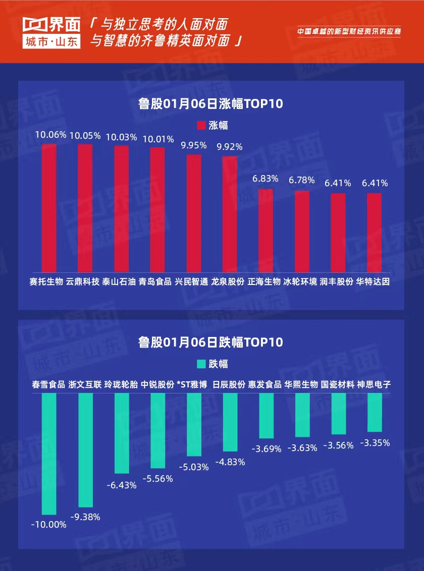 1月06日,山东182股上涨,68股下跌。