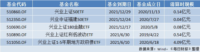 从时间点来看,兴业基金遭清算的5只产品中,有3只产品发生在12月份,分别为兴业上证180金融ETF、兴业中证福建50ETF和兴业上证50ETF,另有2只产品发生在6月份,分别为兴业上证1-5年期地方政府债ETF和兴业上证红利低波动ETF。