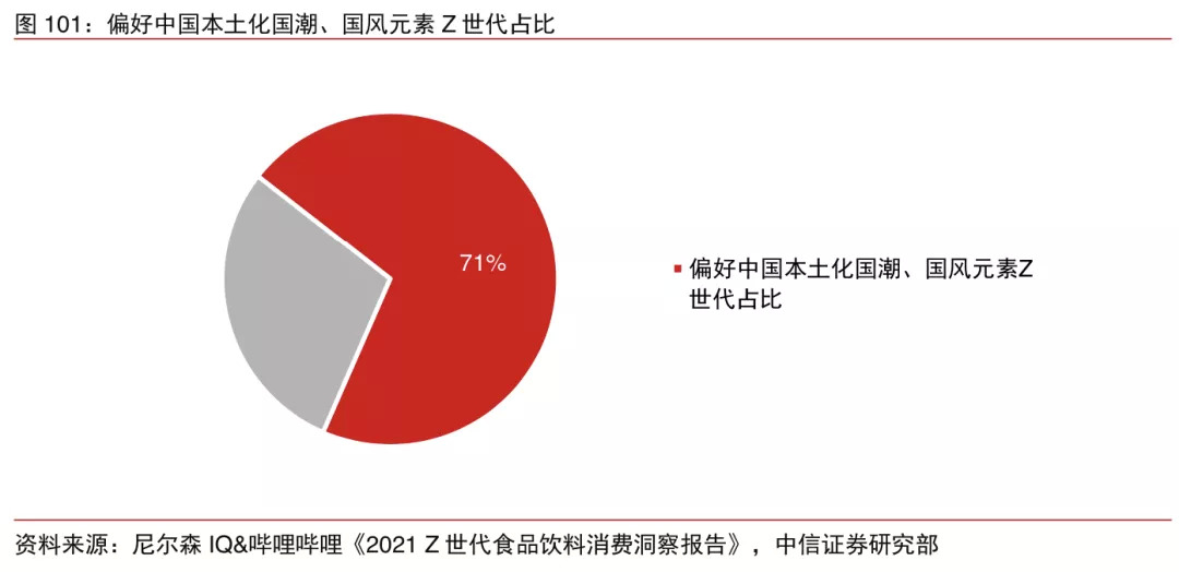 国风元素在Z时代中流行。国风游戏凭借自身强消费性、年轻化和外向性的文化特点成为年轻人追捧的对象,高达71%的的Z世代偏好中国本土国潮、国风元素。数据显示,B站近九成国风爱好者是Z世代,国风视频UP主70%是Z世代,Z世代古风服饰销售额增长连续两年超300%。