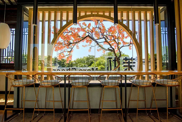 茉沏的门头是一个大大的C字造型,这个设计灵感来源于苏州园林的拱门;