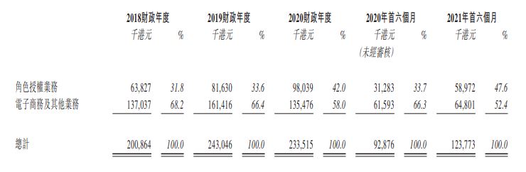 授权业务的快速增长与德盈控股扩张授权商队伍的行为不无关系。截至今年6月,与其建立合作关系的授权商已达到346个,授权商品及业务种类也超过了2万种。与此同时,德盈控股还增加了向授权商收取的最低保证金、设计咨询服务费以及额外授权金,2021年上半年增加的2770万港元授权业务收入正是来源于此。