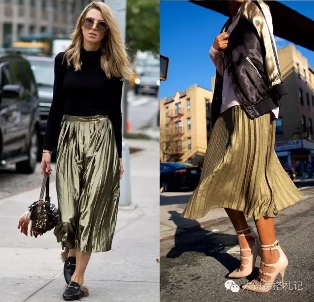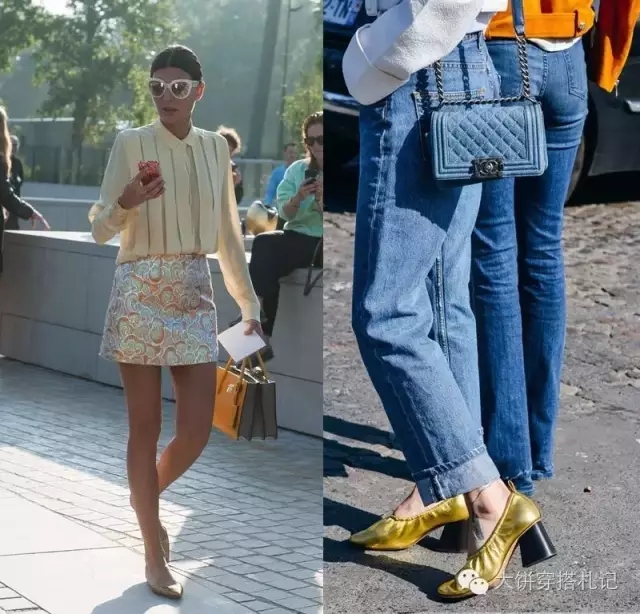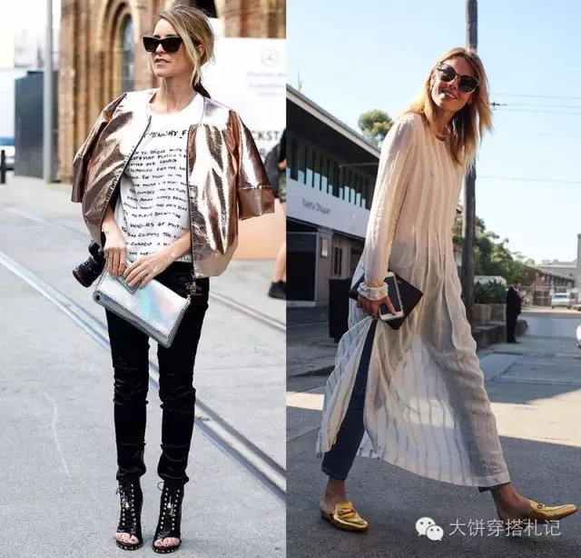 最后,敢于金属色。虽然饼觉得最为时尚圈中的一大重要元素,它们的搭配方法不妨了解一番,但讲真作为日常,一双金属色鞋履、手包足以~至于服装咱还是悠着点儿~▼