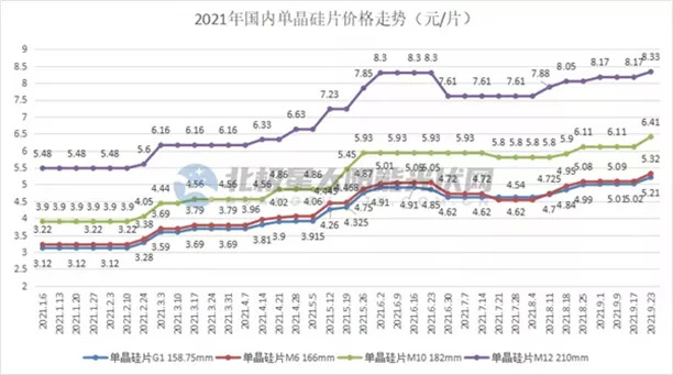 八月、九月,以隆基、中环为代表的硅片厂商开始了两轮涨价。