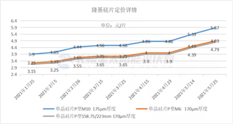 与此同时,硅料价格上涨压力正在不断向下传导。2021年5月,两家硅片龙头企业一个月内相继2次宣布上调了硅片价格。