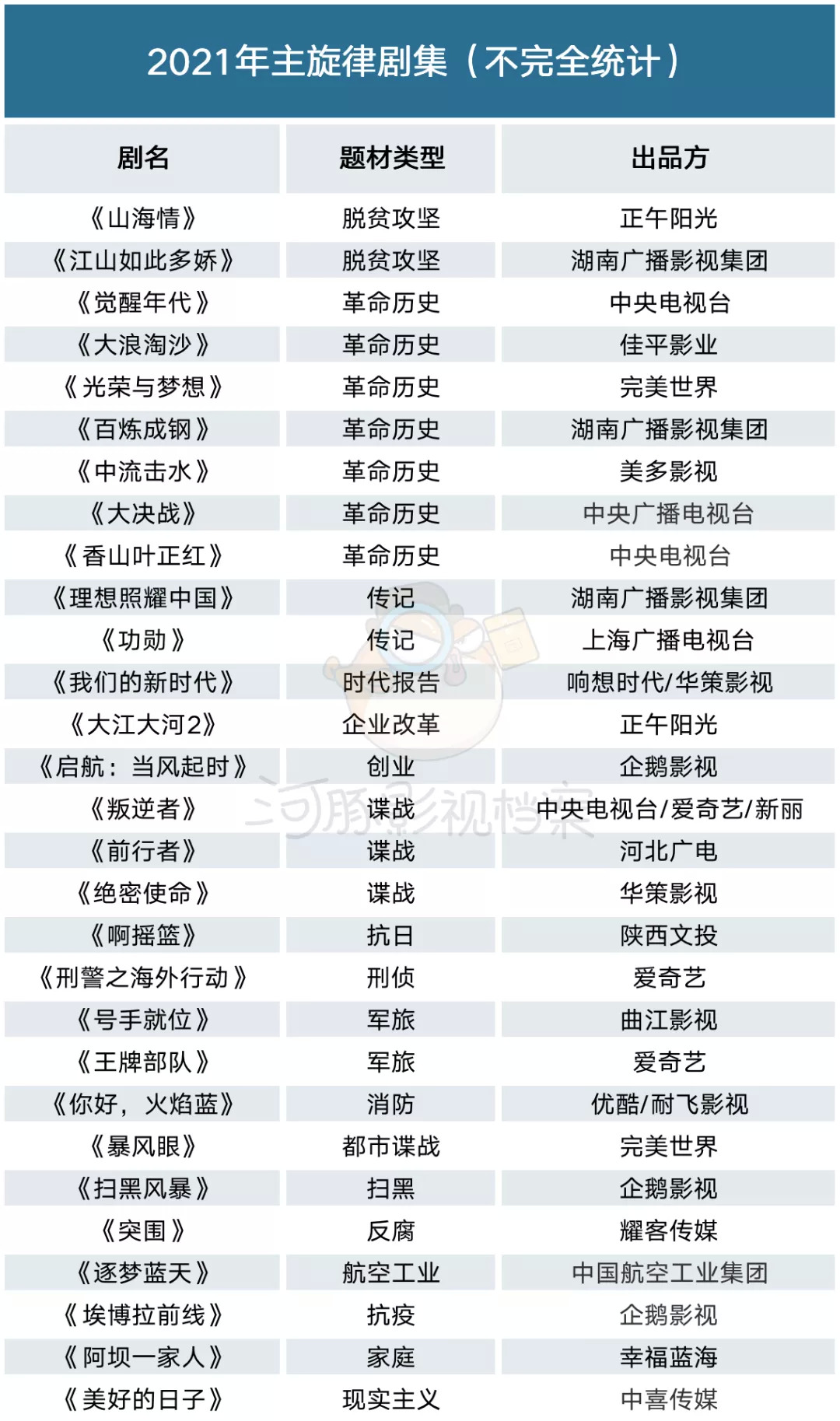 接下来,河豚影视档案(ID:htysda)将从剧集、电影和综艺三个方面进行复盘,解读2021年的主旋律创作。