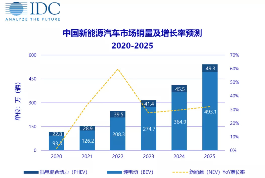 中国新能源汽车市场销量预测2020-2025,截图自IDC官网
