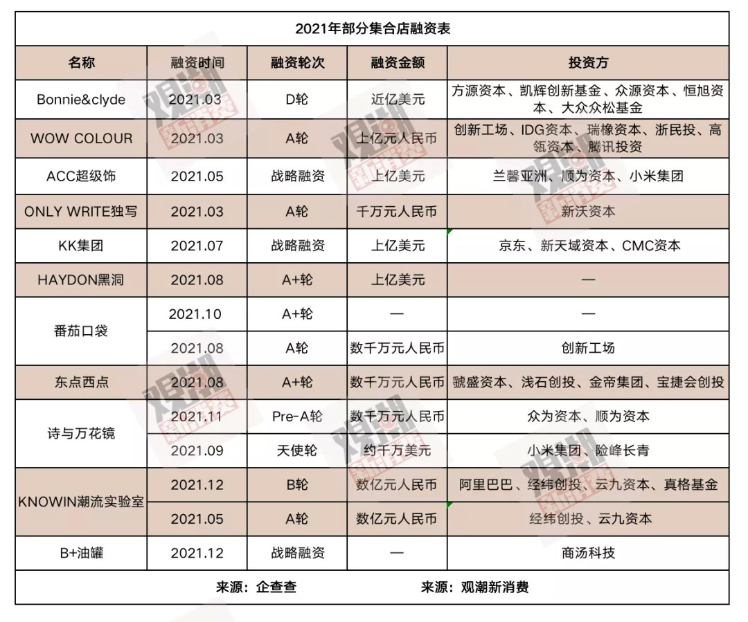 从2021年3月开始,集合店融资的热度就开始高涨起来,直至年末最后一天,资本也没放弃入局的机会。