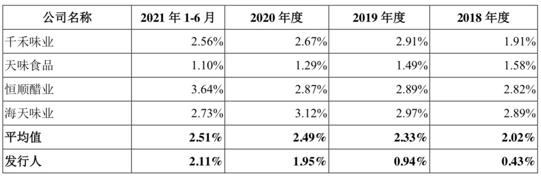 主要调味品企业的研发费用率 图源 / 幺麻子招股书
