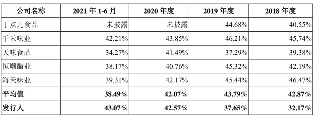 主要调味品企业的毛利率情况 图源 / 幺麻子招股书