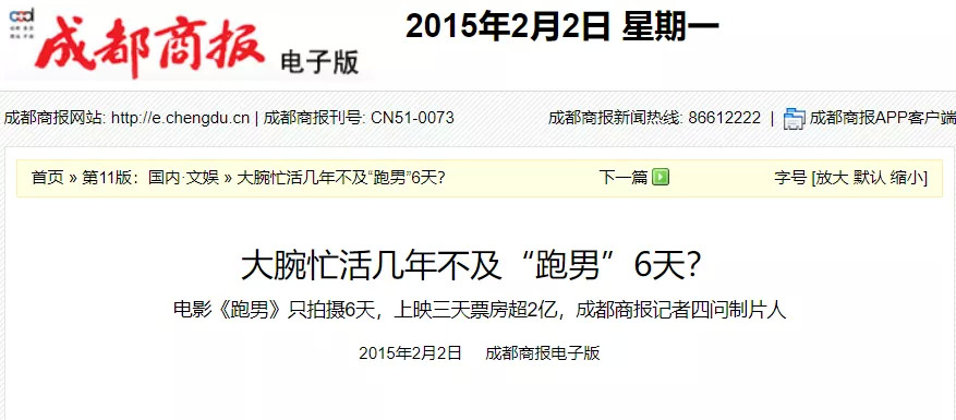 报端上,更是不乏批评文章,将综艺电影视为没诚意、没剧本、靠节目人气来“割观众韭菜”的“货色”。成都商报就曾发布题为《大腕忙活几年不及“跑男”6天》的文章来“四问制片人”,质疑电影的诚意和质量。