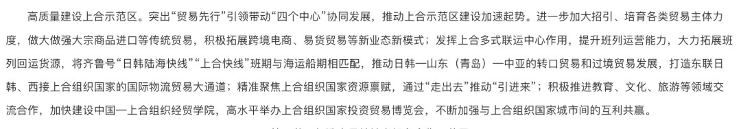 新规划中专门将“高质量建设上合示范区”作为一节重点提及,享受这种待遇的功能区也只有“高水平建设自贸试验区”,再次说明上合示范区的特殊而重要的地位。
