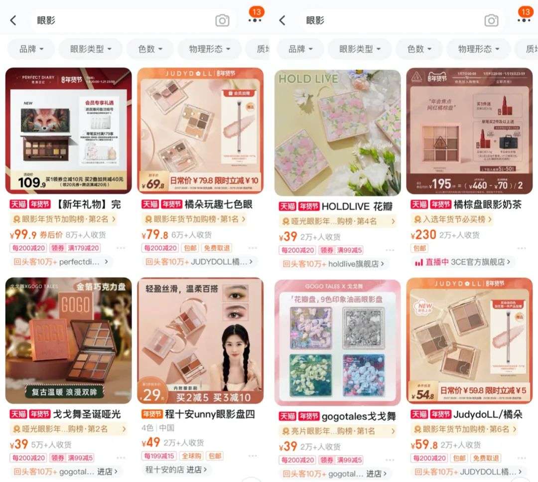 以眼影为例,销量靠前的完美日记等品牌,均是在小红书出圈