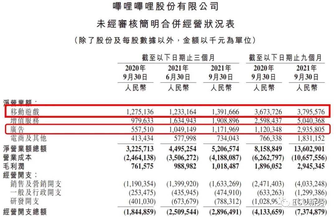 但兜兜转转下来,除了增值服务和游戏业务外,B站并没有如愿找到新方向。所以外界看到,B站的广告业务开始提速:2021年Q3,B站广告业务收入占比已经非常接近游戏业务,“广告油门”踩得非常明显。