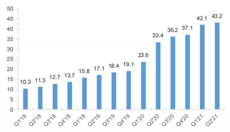 ▲Roblox 18Q1-21Q2 DAU(百万)