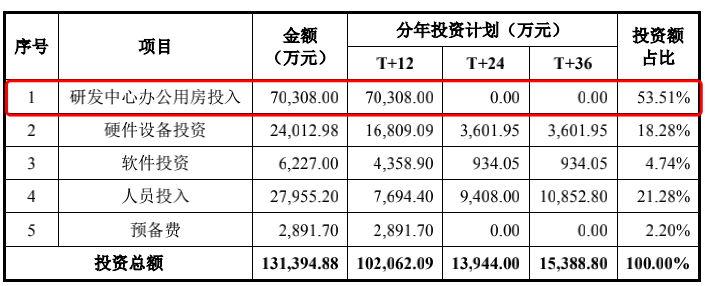 临床研究智能化协作平台升级项目计划投入募集资金最多,占募资总额的65.5%。但值得注意的是,其中超五成(7.03亿元)将用于购买不超过2.6万平方米的办公楼,合理性值得商榷。