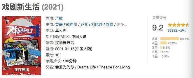 拿下豆瓣9.2分的《戏剧新生活》背后,除了爱奇艺自身的安可工作室,严敏主导的闻脉文化负责了节目内容研发制作;该公司还在近两年与腾讯视频合作了《德云斗笑社》、与B站合作了《说唱新世代》。三个全然不同的节目类型,公司在综艺制作上的把控由此可见。