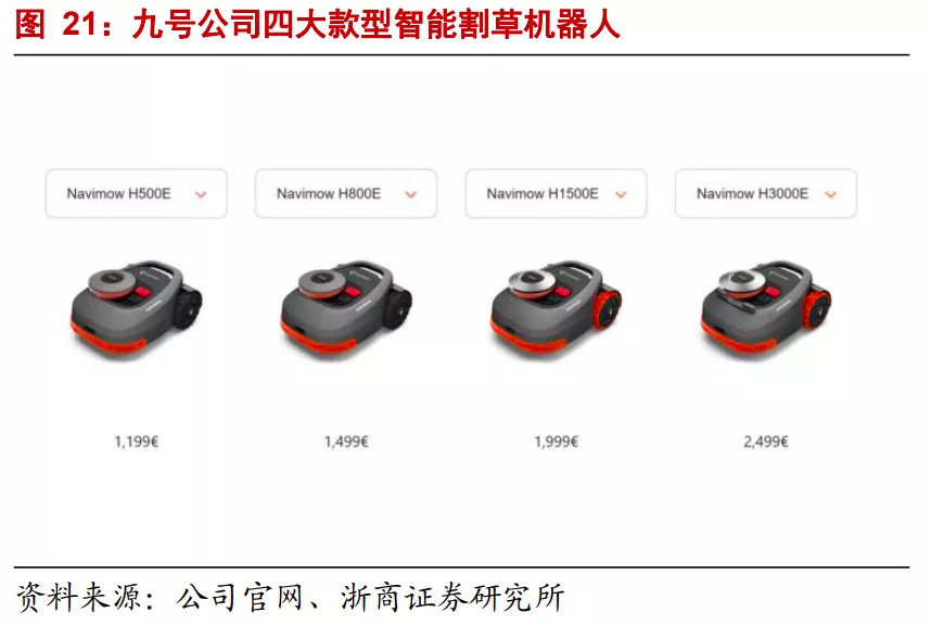 从各公司的进度看,九号公司可能会是最先推出基于RTK技术和超声波传感器的智能割草机器人,其计划产品在2022年5月上市销售,价格介于1200-2500欧元,已经显现出九号想成为“屠龙少年”的野心。但从其100台试样机的市场反馈来看,其产品的避障能力还有大幅提高的空间,这也可能会进一步延长其产品从发布到上市的时间跨度(原计划2022年2、3月上市)。