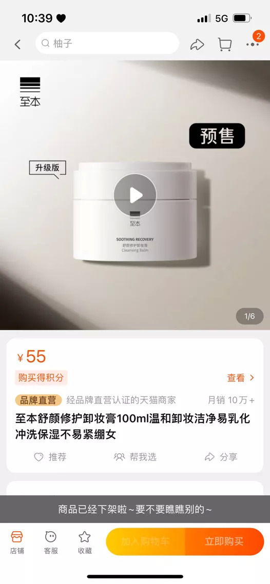 而此次至本临时停产的卸妆膏是品牌的另一个明星单品。在品牌天猫旗舰店,该卸妆膏月销量已达10万+,不过目前已处于下架状态。
