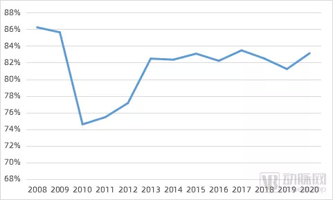 Cerner2008年-2021年毛利率变化(数据来源:根据Cerner历年招股书整理)