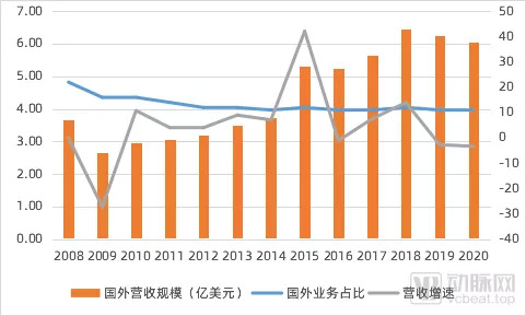 EHR厂商进入一个新的国家通常依赖于两种方式:一是合作本土企业,对自有方案进行本土化处理;二是收购本土EHR供应商,使用供应商的EHR直接获取市场份额。在扩张的过程中,Cerner没有偏好于某种单一的模式,但并未在10余年的发展中做出亮眼的成绩。2008-2020年间,Cerner海外业务占整体营收比例由2008年的22%收缩至2020年的11%,且总量变化不大。